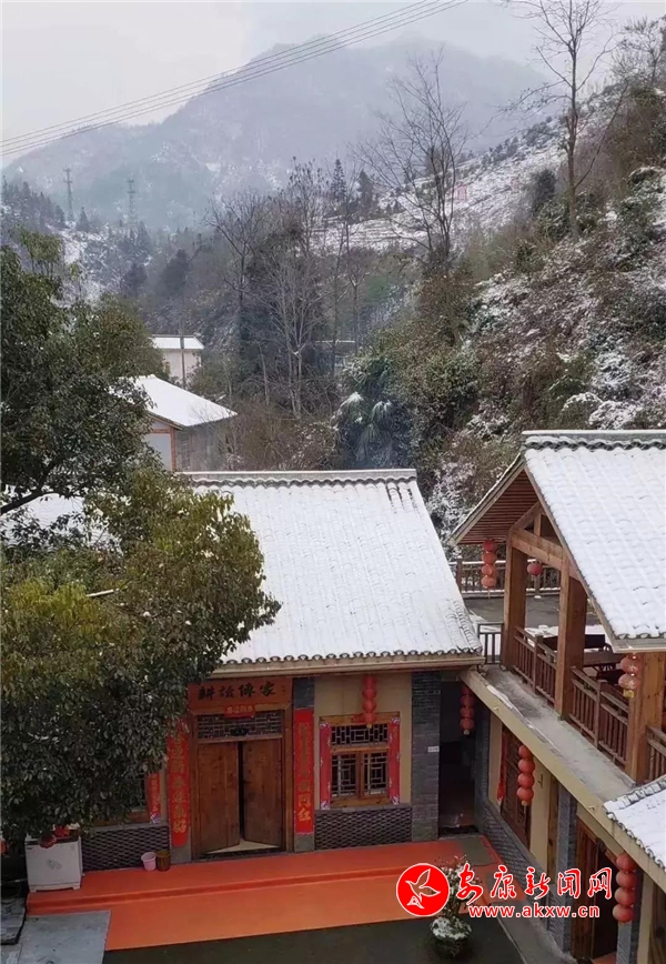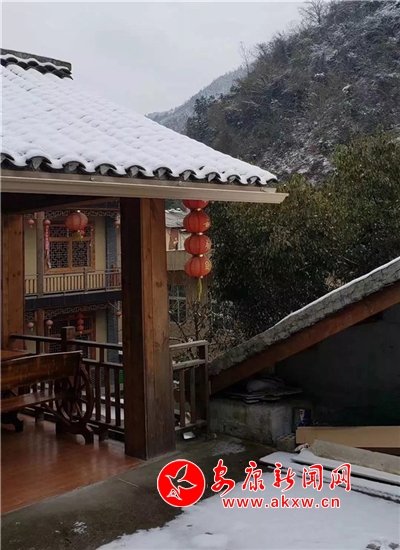 紅屋檐、紅格窗、紅木門、紅楹聯(lián)、紅地毯,還有那懸掛在屋頂上隨風(fēng)舞動(dòng)的紅燈籠,在瑟瑟寒風(fēng)和茫茫白雪中,才顯其妖嬈展姿。這里,是紅與白色澤、熱與冷色溫的匯聚。紅,是一枝梅,是數(shù)盞燈,是萬(wàn)家火,是山里人熱騰騰好日子的主色調(diào)……