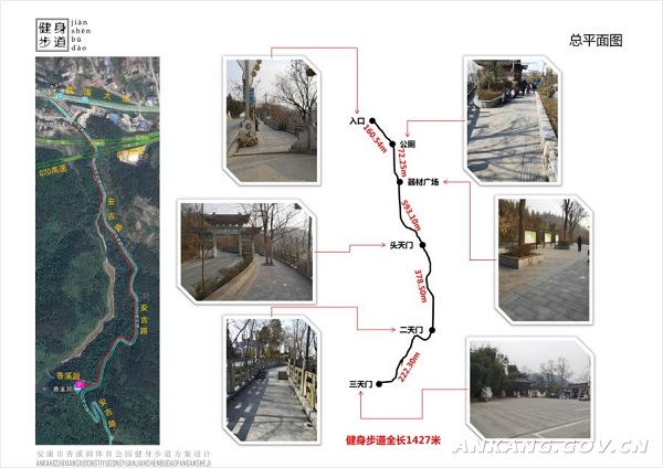 項(xiàng)目實(shí)施地點(diǎn)為安康市香溪洞風(fēng)景區(qū)原有健身步道(水泥路面),北起香溪文化廣場(chǎng)南側(cè),南至香溪洞景區(qū)停車場(chǎng),全長(zhǎng)約1.5公里,寬度介于2.47—3.72米之間。