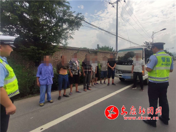 7月31日15時(shí)許,大隊(duì)執(zhí)勤民警在316國(guó)道沿線開(kāi)展路面巡邏,行至恒口東大門(mén)時(shí),發(fā)現(xiàn)一輛號(hào)牌為皖A(yù)C***C號(hào)輕型欄板貨車后車廂有違規(guī)載人嫌疑,巡邏民警立即上前攔停,示意駕駛?cè)死钅衬惩\嚱邮軝z查。經(jīng)查,該貨車核定載人數(shù)為5人,實(shí)際載9人,貨車車廂違法載客4人,屬于貨車違法載客的嚴(yán)重交通違法行為。