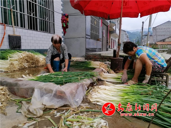 眼下,正值新蔥大量上市的季節(jié)。在安康市恒口示范區(qū)高樓村二組,筆者看到兩位老人正坐在門前臨時壘起水池邊包裝整理從地里挖回的新蔥,臉上充滿收獲的喜悅。