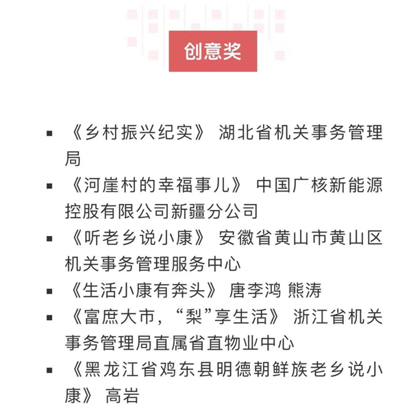 其中,恒口示范區(qū)選送作品《生活小康有奔頭》(作者·唐李鴻、熊濤)榮獲創(chuàng)意獎,其風(fēng)格親切,制作精良,感染力和觀賞性強(qiáng)。作品從獨(dú)特老鄉(xiāng)視角,讓老鄉(xiāng)當(dāng)主角,面對鏡頭講述自己用勞動創(chuàng)造幸福生活的故事。同時,生動展示我們黨帶領(lǐng)全國各族人民打贏脫貧攻堅戰(zhàn),全面建成小康社會的偉大歷史成就。?