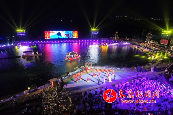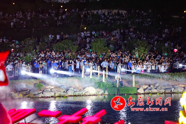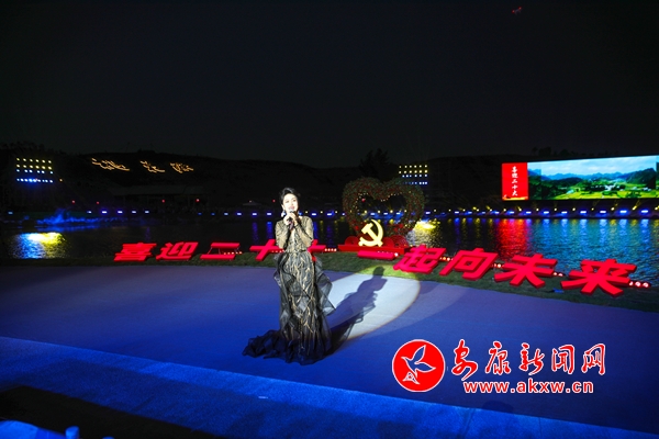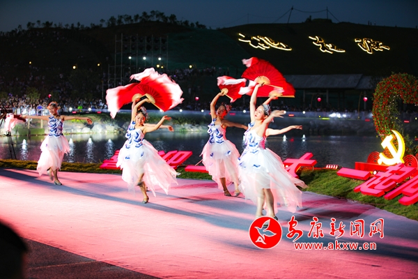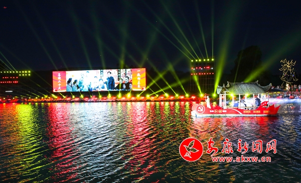 晚會在嘹亮激昂的獨唱《東方紅》中拉開序幕,緊接著,磅礴大氣的歌舞串燒《我和我的祖國》《萬疆》《愛我中華》,如詩如畫的水上表演《南湖紅船》《江南水鄉(xiāng)》《滾滾長江東逝水》,動力澎湃的RAP時尚秀《門戶新安康》,美輪美奐歌舞表演《我的深情為你守候》《為祖國干杯》《送你一個長安》《我愛你,中國》《領航》等節(jié)目相繼登臺表演,與此同時,絢麗多彩的燈光秀和仙氣飄飄的霧森特效穿插其中,不斷將演出推向高潮。最后,整場演出在大合唱《沒有共產黨就沒有新中國》的歌聲中圓滿落下帷幕。