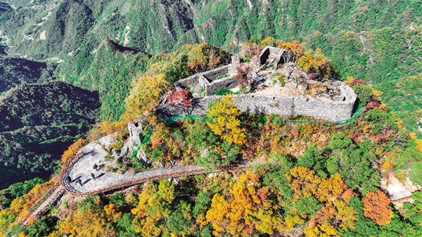 全勝寨位于我市嵐皋縣民主鎮(zhèn),是一個隱于群山、建于絕壁之上、保存完整的古山寨群落。古寨遺存的多處石砌城墻和戰(zhàn)壕錯落有致,延綿數(shù)公里,為秦巴山區(qū)所罕見。據(jù)當(dāng)?shù)厥分居涊d,此寨始建于明末,是當(dāng)?shù)孛癖姙槎惚軕?zhàn)亂而建。因山寨抵御多次外來侵擾,屢獲全勝,故名“全勝寨”。這里平均海拔1300至1500米,是陜西省第七批文物保護單位,也是目前我省保存較為完好、歷史戰(zhàn)績輝煌的寨堡,同時也是重要的革命歷史舊址。對于研究明、清、民國時期嵐皋歷史文化和寨堡建筑具有重要價值。(袁法 攝)