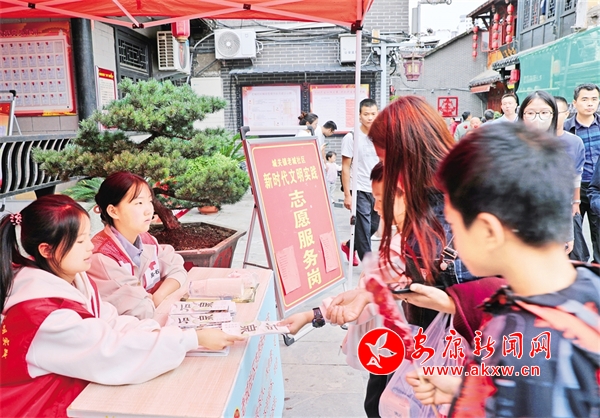 中秋國慶節(jié)假期,石泉縣在景區(qū)景點以及人流、車流集中地安排志愿服務(wù)點,積極組織文明實踐志愿者,為游客提供旅游咨詢、文明引導(dǎo)等服務(wù)。董長松 攝