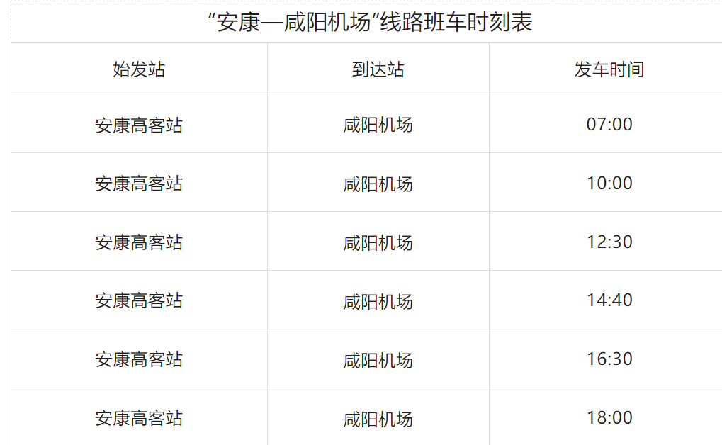 明日起,“安康—咸陽機(jī)場”客運(yùn)線路發(fā)車時間調(diào)整