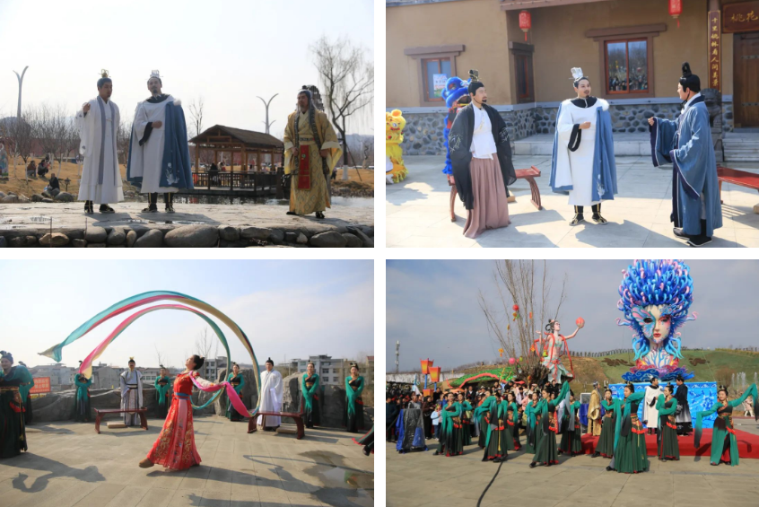 豐收大秧歌、龍騰腰鼓隊(duì)、喜慶蓮響、彩船、花轎大聯(lián)歡、社火、小場(chǎng)子戲等精彩的傳統(tǒng)民俗節(jié)目在桃花源相繼上演。新穎的編排、精彩的表演,令現(xiàn)場(chǎng)游客大飽眼福,叫好聲、喝彩聲此起彼伏。當(dāng)天近25000余名市民游客前往桃花源觀看表演、打卡游園,處處洋溢著“歡歡喜喜過(guò)大年”的節(jié)日氣氛。