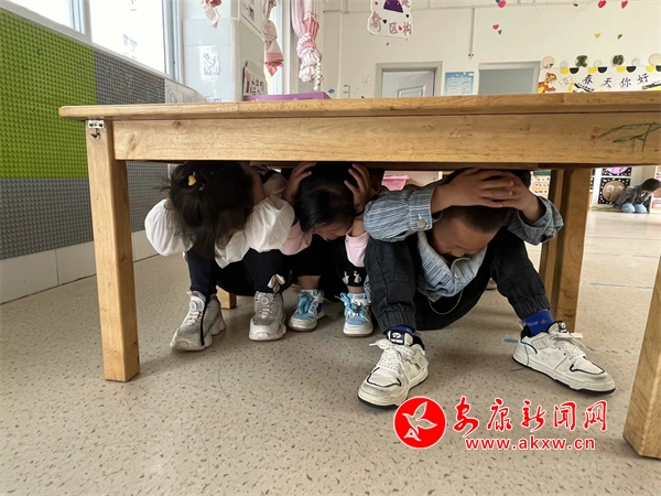 隨著室內避震警報響起,防震演練正式開始,老師們迅速啟動《防震疏散演練應急預案》,各班教師立即引導幼兒盡量躲避在室內墻根、墻角或床、桌等相對堅硬的家具與三角區(qū)避震空間避險,引導幼兒身體彎曲,降低身體重心,盡最大努力保護好頭部。逃生疏散中老師不斷提醒幼兒們不要擁擠,手保護頭部、彎腰,迅速且有序沿著指定疏散路線撤離到安全區(qū)域,同時檢查是否有掉隊的孩子,確保每位幼兒安全撤離。