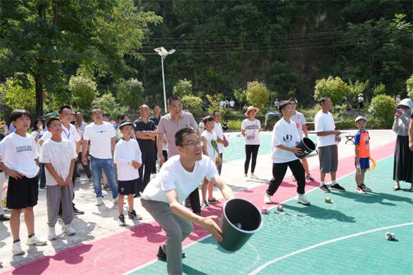 整場活動圍繞“感黨恩”“講孝義”“愛運(yùn)動”三個主題展開。在“感黨恩”活動中,干部群眾一起回顧黨的光輝歷史、歌頌黨的豐功偉績,為黨的103歲生日獻(xiàn)上誠摯祝福;在“講孝義”活動中,宣講員緊扣建設(shè)崇德向上幸福安康目標(biāo),用“小道理”講“大故事”,用“身邊事”教育“身邊人”,引領(lǐng)群眾自覺奮發(fā)向上,崇德向善。在“愛運(yùn)動”環(huán)節(jié),干部群眾齊上陣,踴躍參與到“螃蟹賽跑”、雙人擲沙包、環(huán)湖健步走、踢毽子、投壺、估重等趣味運(yùn)動項(xiàng)目中,現(xiàn)場氣氛熱烈、歡聲笑語不斷,大家在青山綠水中,盡享運(yùn)動的快樂。