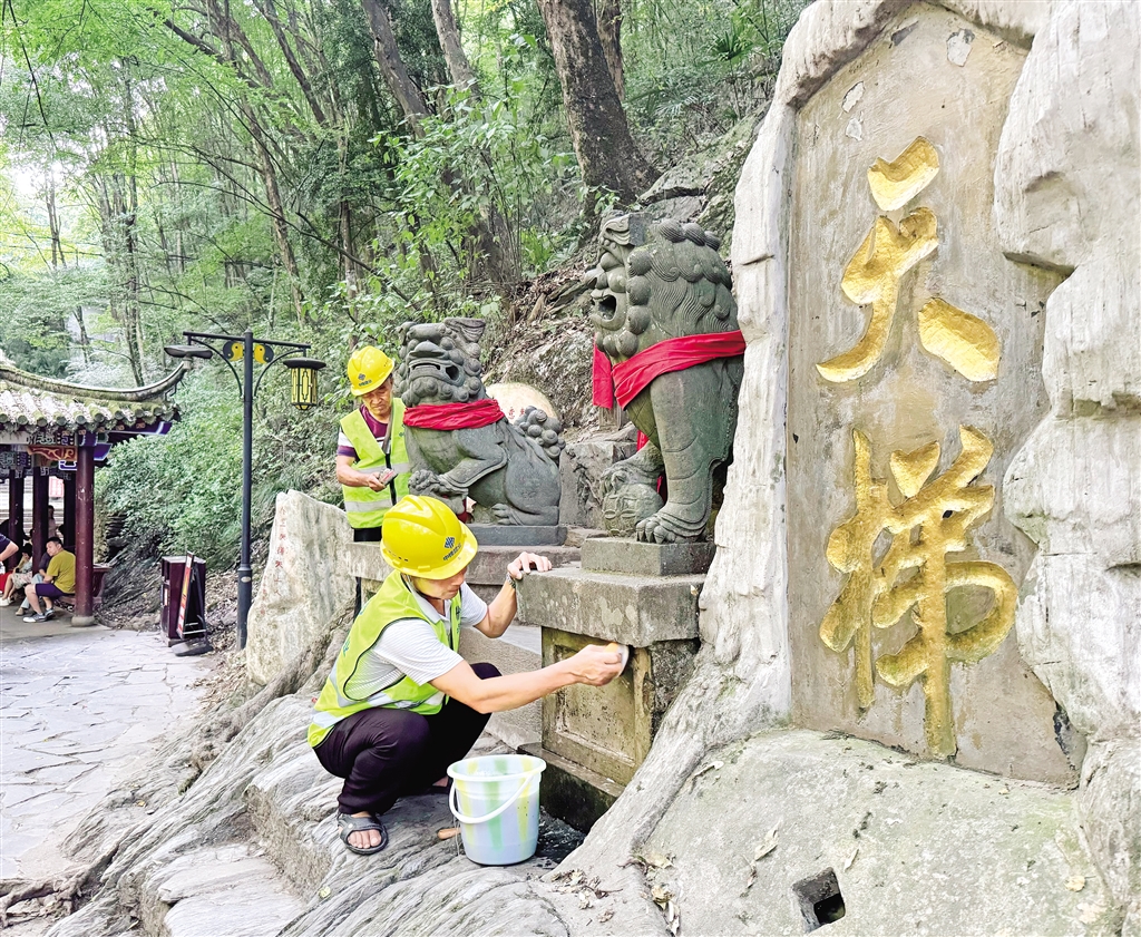 8月22日,工作人員正在香溪洞開展景區(qū)設施清理工作。據(jù)施工現(xiàn)場負責人介紹,香溪洞風景名勝區(qū)管理局將會對供水、供電、照明等設施進行升級改造。(鄒一銘 攝)