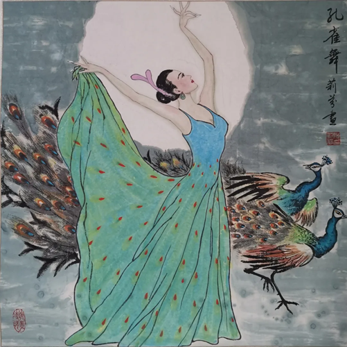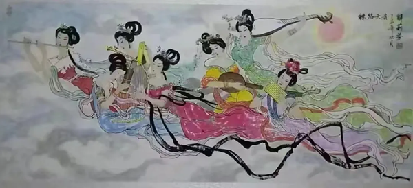 解大姐是陜北人,性格開朗、直率,說話中間或帶出一些濃重的陜北口音。雖說她主業(yè)從于政界,但她微笑的背后卻潛藏著不可掩飾的藝術(shù)天賦,揮發(fā)著令人奪目的藝術(shù)才情。繁雜的政務(wù)工作之余,她創(chuàng)作不輟,堅(jiān)持不懈,居然在多個(gè)藝術(shù)門類收獲頗豐,好評(píng)連連。寫小說,她寫出幾十萬(wàn)字的長(zhǎng)篇出版發(fā)行;寫劇本,竟拍成了電影予以公映;學(xué)國(guó)畫,亦讓藝術(shù)界的大咖贊口不絕。我雖不才,空有浮名,但深耕藝界多年,對(duì)于其中的好賴還能分出一二。我感到,一個(gè)人的人品和藝品基本一致,解大姐的藝術(shù),是扎根于她熟悉的陜北大地的藝術(shù),是生長(zhǎng)在山峁峁上經(jīng)歷風(fēng)霜雨雪的藝術(shù),就像那陜北倔強(qiáng)的疙瘩柳,散發(fā)著對(duì)土地對(duì)生活的親近和熱情,對(duì)人生價(jià)值實(shí)現(xiàn)的不屈和追求??吹剿膰?guó)畫新作,有陜北剪紙等民間藝術(shù)的滋養(yǎng)和影響,真切而樸實(shí)。她的飛天人物系列,泥古而不落窠臼,使我想到疙瘩柳條隨風(fēng)擺動(dòng)的婀娜風(fēng)姿,溫溫潤(rùn)潤(rùn),令人遐思和向往;她的花鳥畫作,使我想到陜北山野一片蒼茫之間,一朵兩朵盛開的山丹丹花,嬌艷得令人不忍觸手;她的山水畫作,又猶如陜北山原上嫩黃的棗花,洋溢著撲面而來的質(zhì)樸、清新和率真之氣。