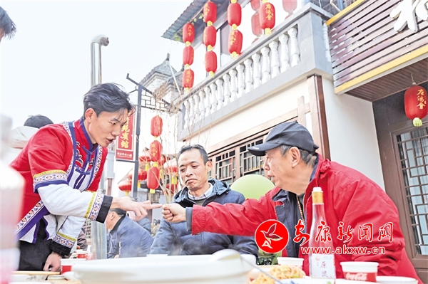 長街里的宴席上坐無缺席;一道道精美的庖湯佳肴陸續(xù)上場,席間,賓客們喝著美酒、品著美食、看著節(jié)目,歡聲笑語不斷。臺(tái)上的節(jié)目精彩紛呈,讓賓客們目不暇接,不時(shí)報(bào)以熱烈掌聲,充分展現(xiàn)了石泉縣深厚的文化底蘊(yùn)和獨(dú)特的民俗文化。不少外地游客慕名而來,帶著親友來到石泉,親身感受特色庖湯宴。豪邁的秦巴漢子激情劃拳喝酒,在場的游客市民都沉浸在新年的喜悅中,舉杯暢飲,現(xiàn)場熱鬧非凡,滿滿年味十里香飄……