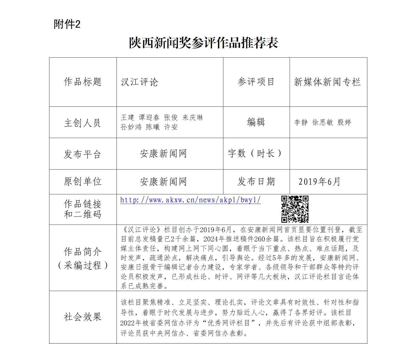 經(jīng)過社黨委研究決定,擬推薦以下2件新聞作品參評(píng)“2024年度陜西新聞獎(jiǎng)融合報(bào)道、應(yīng)用創(chuàng)新和新媒體新聞專欄”。公示時(shí)間從2025年1月6日至2025年1月10日,公示期5個(gè)工作日。如有不同意見,請(qǐng)向安康日?qǐng)?bào)社機(jī)關(guān)紀(jì)委、新聞管理部反映。