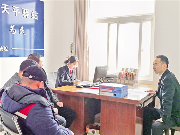 近年來,旬陽法院立足山區(qū)基層法院實(shí)際,在抓好人民法庭工作的基礎(chǔ)上,在法庭下轄鎮(zhèn)的村、社區(qū)設(shè)立“天平驛站”,安排法官定期輪值,及時(shí)響應(yīng)群眾訴求,實(shí)現(xiàn)矛盾糾紛一站式接收、一攬子調(diào)處、全鏈條閉環(huán)解決, 推動(dòng)審判觸角向百姓“家門口”延伸。