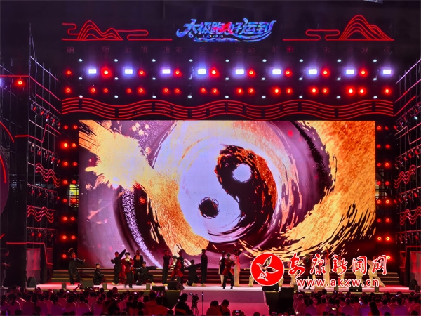 夜幕降臨,開幕式現(xiàn)場美輪美奐、氣勢恢宏。燈光秀、歌舞秀拉開活動帷幕,博得雷鳴般的掌聲。21個鎮(zhèn)代表隊登臺亮相?!盁熁ㄐ恪辫矈Z目,化作多彩光芒,點亮太極城的夜空。伴隨著現(xiàn)場觀眾的激情吶喊,文藝節(jié)目相繼上演,歌伴舞《沖呀!去旬陽》、旬陽好物旬陽非遺推介、舞蹈《舞動長樂紅》、民歌聯(lián)唱《姐不約郎郎不來》、千人復(fù)誦《太極·旬陽賦》、太極秀《太極江湖》、千人齊跳《太極舞》等節(jié)目,充分展示了旬陽的文化底蘊、旅游資源、人文風(fēng)情,掌聲如潮、歡聲如雷。中國內(nèi)地歌手屠洪剛演唱的歌曲《你》《江山無限》《精忠報國》瞬間將現(xiàn)場氣氛燃爆。