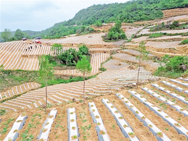 離開錢河梁,走進海棠寺村的梯田里,種煙大戶吳義剛正迎著晨曦帶上20余名村民搶墑移栽。23年的種煙歲月在他臉上刻下溝壑,也沉淀出“致富良經(jīng)”。他瞇著眼睛笑著說:“去年新種的80畝煙田毛收入24萬,今年爭取再多賺點,給孩子換臺好車。”當目光撫過嫩綠的煙苗,手掌摩擦著滴灌管道,吳義剛驀然間變得激動:“雖然今春干旱嚴重,但是政府配發(fā)的抗旱設備讓移栽成活率大大提升,我們的心血總算沒有白費?!贝逯Р繒泟⒌瞧巾斨胰账闫甬a(chǎn)業(yè)增收賬:“今年450畝煙田已基本栽完,11個大戶帶著小戶干,戶均增收能破萬元?!?/p>