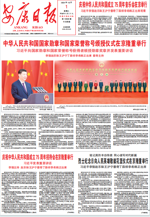(2024年10月1日安康日報01版“中華人民共和國國家勛章和國家榮譽(yù)稱號頒授儀式在京隆重舉行”)