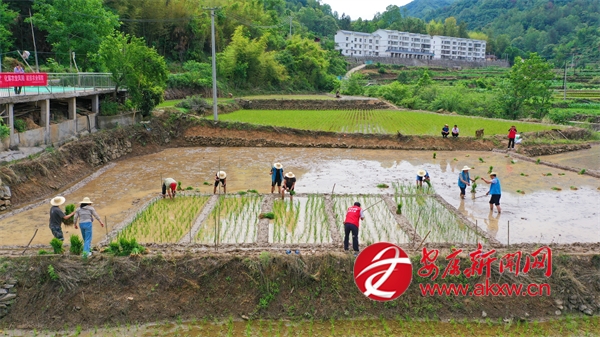 6月5日,走進(jìn)城關(guān)鎮(zhèn)漁灣村麻莊組,一片熱火朝天的農(nóng)忙景象映入眼簾。農(nóng)技人員與農(nóng)戶們并肩作戰(zhàn),共同進(jìn)行水稻插秧作業(yè)。劃線分區(qū)、精準(zhǔn)配肥、均勻撒肥、有序插秧……每一項(xiàng)工作都進(jìn)行得有條不紊,大家分工明確、配合默契,田間地頭處處洋溢著忙碌而歡快的氣息。