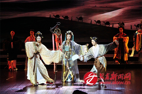 國風演繹環(huán)節(jié),精心編排了“金蠶·時空之眼”“漢風·鑿空之旅”“唐韻·交融盛世”“宋韻·茶香悠揚”“金蠶故鄉(xiāng)·上元安康”等展演篇章,表演者重現(xiàn)漢唐風韻、宋明雅趣,串聯(lián)絲路文化與安康特色,以漢服為媒介,讓觀眾沉浸式感受中華傳統(tǒng)美學,呈現(xiàn)跨越時空的漢服視聽盛宴。