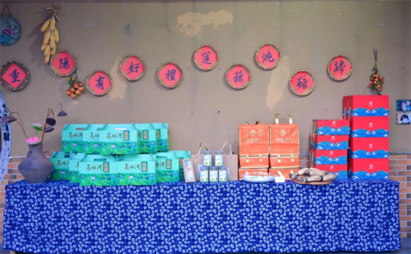 此外,活動(dòng)現(xiàn)場(chǎng)精心打造了“重陽(yáng)有好禮,蓮藕燉豬蹄”網(wǎng)紅墻,成為參會(huì)人員打卡留戀的熱門地點(diǎn);同時(shí),設(shè)置了農(nóng)副產(chǎn)品展銷區(qū),集中呈現(xiàn)紫陽(yáng)蒸盆子、蒿坪河蓮藕、紫陽(yáng)荷葉茶、蓮藕燉豬蹄等特色農(nóng)副產(chǎn)品。值得關(guān)注的是,硒園農(nóng)莊此次首次推出“蒿坪河蓮藕燉豬蹄”伴手禮盒,分為“四至五人份”和“八至十人份”兩種規(guī)格,于重陽(yáng)節(jié)前夕上市。該禮盒將堂食菜品轉(zhuǎn)化為便攜商品,為當(dāng)?shù)厣徟轰N售拓展了新渠道,也為蓮藕產(chǎn)業(yè)鏈延伸做了初步嘗試。