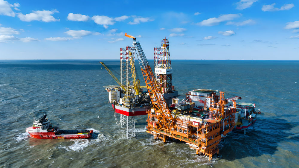 這是2025年2月8日拍攝的渤中26-6油田一期開發(fā)項(xiàng)目海上作業(yè)平臺(tái)(無(wú)人機(jī)照片)。新華社發(fā)(杜鵬輝 攝)
