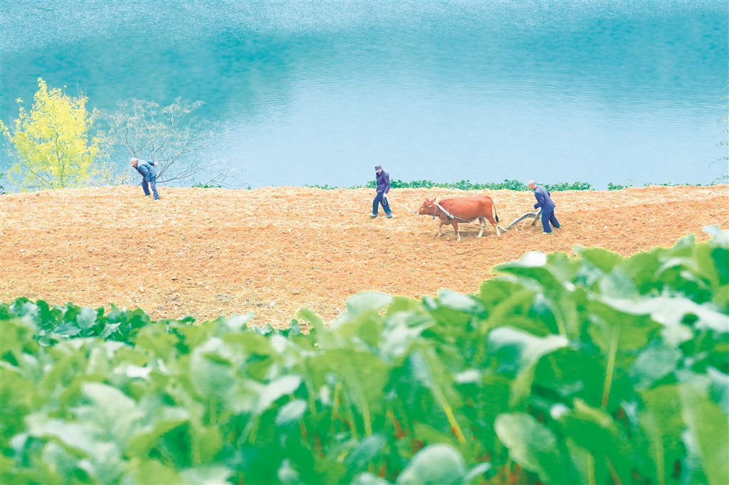 江岸邊,村民進(jìn)行冬季土地管理。李成寶 攝