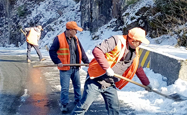 據(jù)統(tǒng)計(jì),入冬以來(lái),寧陜公路段利用短信平臺(tái)等渠道,累計(jì)向駕駛員及沿線群眾推送冬季安全出行提示20000條,新增儲(chǔ)備融雪劑41噸,并配備掃雪車、灑布車、鏟車等專業(yè)設(shè)備15臺(tái)。累計(jì)投入人工170人次、機(jī)械46臺(tái)班,科學(xué)使用融雪劑30.5噸、防滑沙51立方米、食用鹽7.2噸,實(shí)現(xiàn)了防滑處置全覆蓋、高效率,有力維護(hù)了良好道路通行條件。