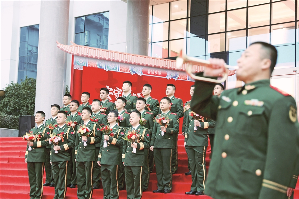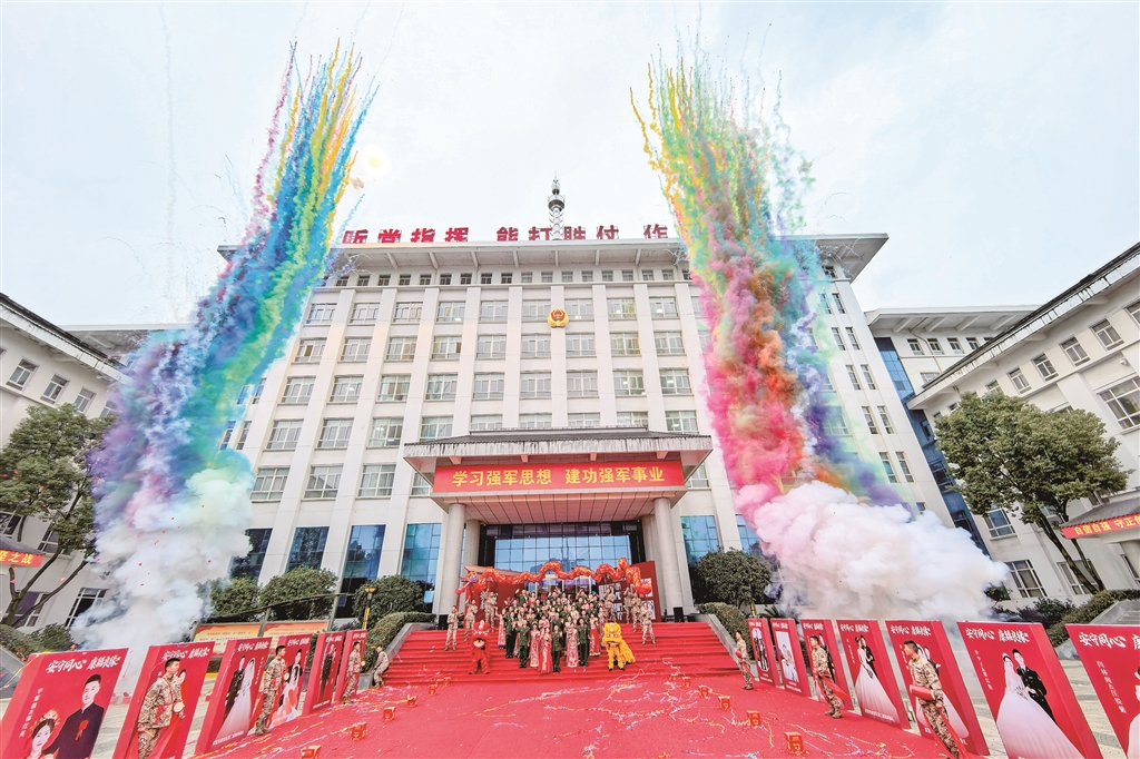 近日,武警陜西總隊(duì)安康支隊(duì)營區(qū)內(nèi)彩旗高懸、紅毯鋪地,一場洋溢著鐵血柔情的集體婚禮在此溫情啟幕。20對新人在軍旗見證下,許下相守一生的誓言。