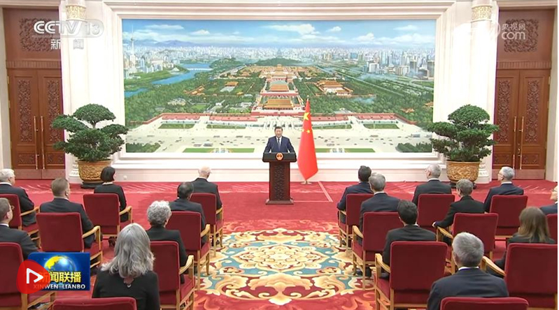 儀式結(jié)束后,習近平在北京廳對使節(jié)們發(fā)表講話。