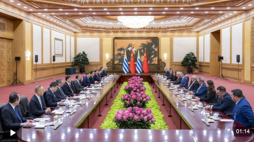 奧爾西說:“尊敬的習(xí)近平主席閣下,烏拉圭高度重視此次對華國事訪問,這也體現(xiàn)在我們派出了很高級別的代表團。今天恰逢兩國建交38周年,兩國的全面戰(zhàn)略伙伴關(guān)系正處于歷史最好時期。烏方有意進一步深化雙方在各領(lǐng)域的合作?!?/p>