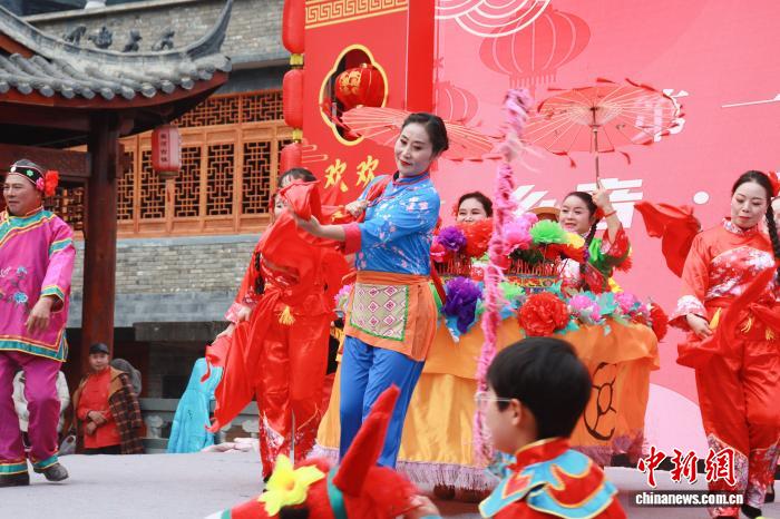 2月4日,全國“村晚”示范展示點活動暨旬陽市“我在古鎮(zhèn)過大年”文旅活動在陜西安康旬陽市蜀河鎮(zhèn)啟動?;顒泳o扣“古鎮(zhèn)年味”元素,融合漢江航運文化、鄉(xiāng)村振興等內(nèi)容,以村歌聯(lián)唱、戲曲薈萃、農(nóng)民走秀、農(nóng)產(chǎn)品展銷等形式,營造出了濃厚的春節(jié)氛圍。圖為活動現(xiàn)場。 張昊 攝