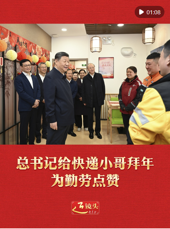 10日上午,習(xí)近平總書記在北京考察調(diào)研,走進(jìn)西城區(qū)新街口街道父母食堂,見到在這里休息的快遞小哥,關(guān)切詢問他們的工作和生活,為他們付出的辛勞和作出的貢獻(xiàn)點(diǎn)贊,并給他們拜年。