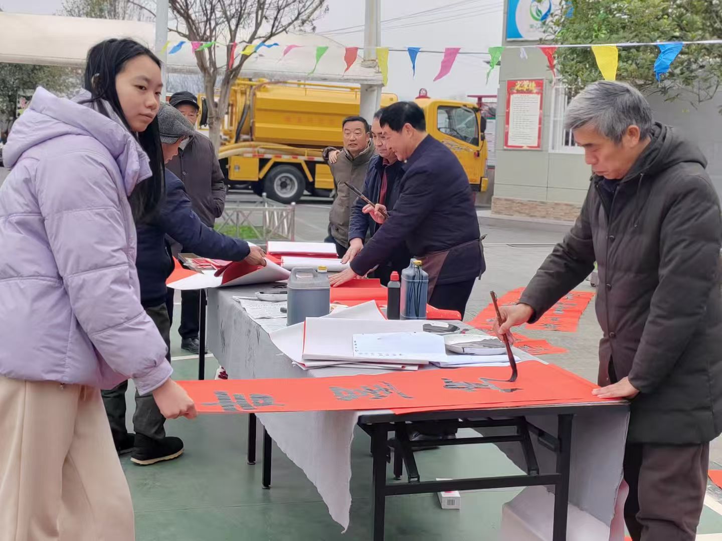 “村晚”現(xiàn)場(chǎng)還設(shè)置了新春惠民服務(wù)區(qū),成為一道溫暖的風(fēng)景線。鎮(zhèn)文化站邀請(qǐng)本土?xí)椰F(xiàn)場(chǎng)揮毫潑墨,免費(fèi)為村民書(shū)寫(xiě)春聯(lián)和福字,墨香四溢,紅紙映春,村民們有序排隊(duì)領(lǐng)取,把新春祝福帶回家。鄉(xiāng)村年貨展銷區(qū)人氣高漲,漢陰富硒糧油、土蜂蜜、臘肉、豆腐干等特色農(nóng)產(chǎn)品整齊擺放,駐村第一書(shū)記、村“兩委”干部化身“推銷員”,熱情推介本土好物,既方便村民置辦年貨,又拓寬農(nóng)產(chǎn)品銷售渠道,讓“村晚”既有文化味,更有煙火氣與增收實(shí)效。