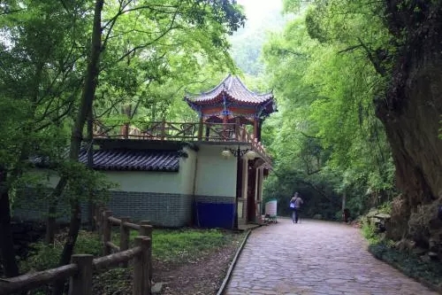遠(yuǎn)觀東山之巔,閣樓崇麗,朱柱黃瓦,蒼林映襯,孑然聳峙。行至坡底,拾階而上,待達(dá)近前,但見一樓三疊,雕梁畫棟,四方飛檐,六角攢尖,鎏金寶頂,直指蒼穹,煞是壯觀。
