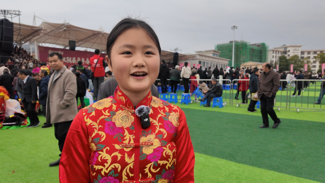 觀眾熊苗苗:很遠(yuǎn)就被鑼鼓喧天的場(chǎng)景給吸引了,看到有很多隊(duì)伍在演出,有年紀(jì)大的叔叔阿姨,也有很小的弟弟妹妹。這個(gè)場(chǎng)景真的非常熱鬧,讓人看著很開心,年味十足。