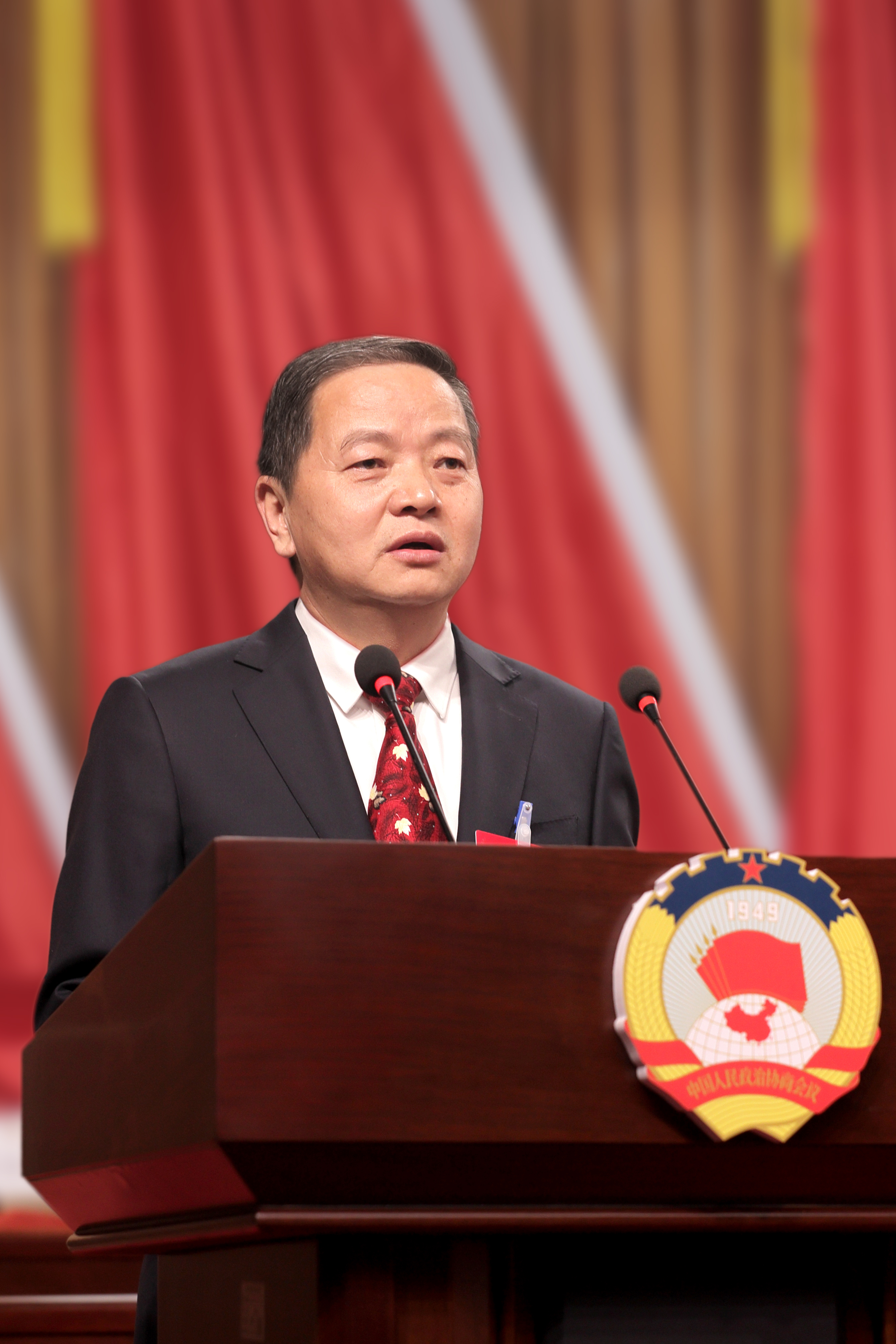 市政協(xié)主席周建功代表政協(xié)安康市第五屆委員會(huì)常務(wù)委員會(huì)作工作報(bào)告。記者 潘潤生 攝