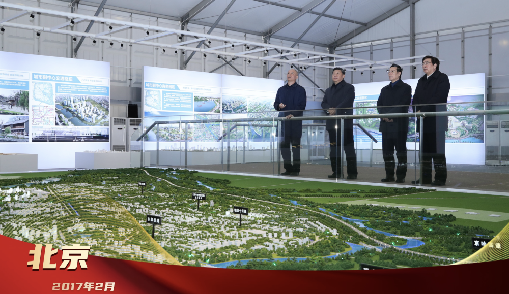 2017年2月24日,習(xí)近平總書記在北京城市副中心行政辦公區(qū)建設(shè)現(xiàn)場(chǎng)指揮部察看規(guī)劃沙盤,了解副中心建設(shè)理念、目標(biāo)定位、文化保護(hù)等情況。創(chuàng)新為要、“瓣瓣同心”,總書記的戰(zhàn)略擘畫,引領(lǐng)京津冀協(xié)同發(fā)展走深走實(shí)。