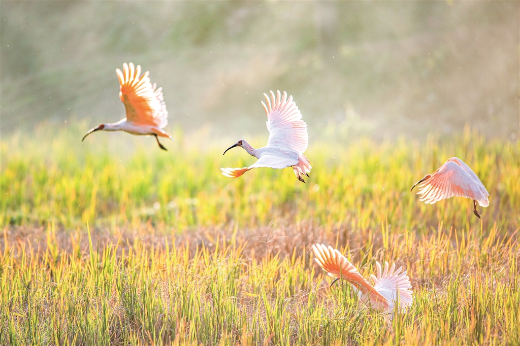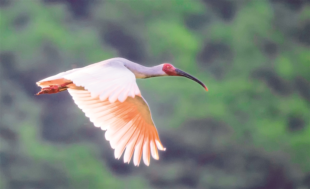 朱鹮,古稱朱鷺、紅鶴,是一種古老的鳥類,已經(jīng)在地球上生活了6500萬年,被稱為鳥類“活化石”“東方寶石”。它是鹮科朱鹮屬唯一的物種,也是國家一級重點保護(hù)野生動物。朱鹮對環(huán)境要求特別高,只有生態(tài)環(huán)境好的地方才會有它們的身影,所以它們也是大自然的小小“環(huán)境監(jiān)測員”。