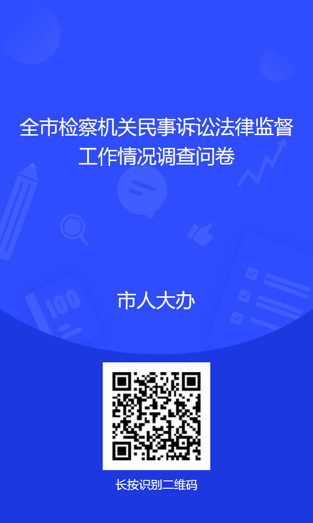根據(jù)市人大常委會(huì)2026年度監(jiān)督工作安排,經(jīng)研究,決定于2026年3月中旬到4月下旬對(duì)全市檢察機(jī)關(guān)民事訴訟法律監(jiān)督工作開(kāi)展專項(xiàng)評(píng)議。按照《安康市人民代表大會(huì)常務(wù)委員會(huì)專項(xiàng)工作評(píng)議辦法》規(guī)定,專項(xiàng)工作評(píng)議采取委托調(diào)查、視察評(píng)議、集中評(píng)議等方式進(jìn)行。為擴(kuò)大群眾參與,提高評(píng)議質(zhì)量,現(xiàn)向社會(huì)公開(kāi)征求對(duì)全市檢察機(jī)關(guān)民事訴訟法律監(jiān)督工作的意見(jiàn)和建議。請(qǐng)掃描二維碼客觀公正、實(shí)事求是地填寫問(wèn)卷,也可以通過(guò)信件、傳真或電子郵件方式送達(dá),截止日期為2026年4月13日18時(shí)。