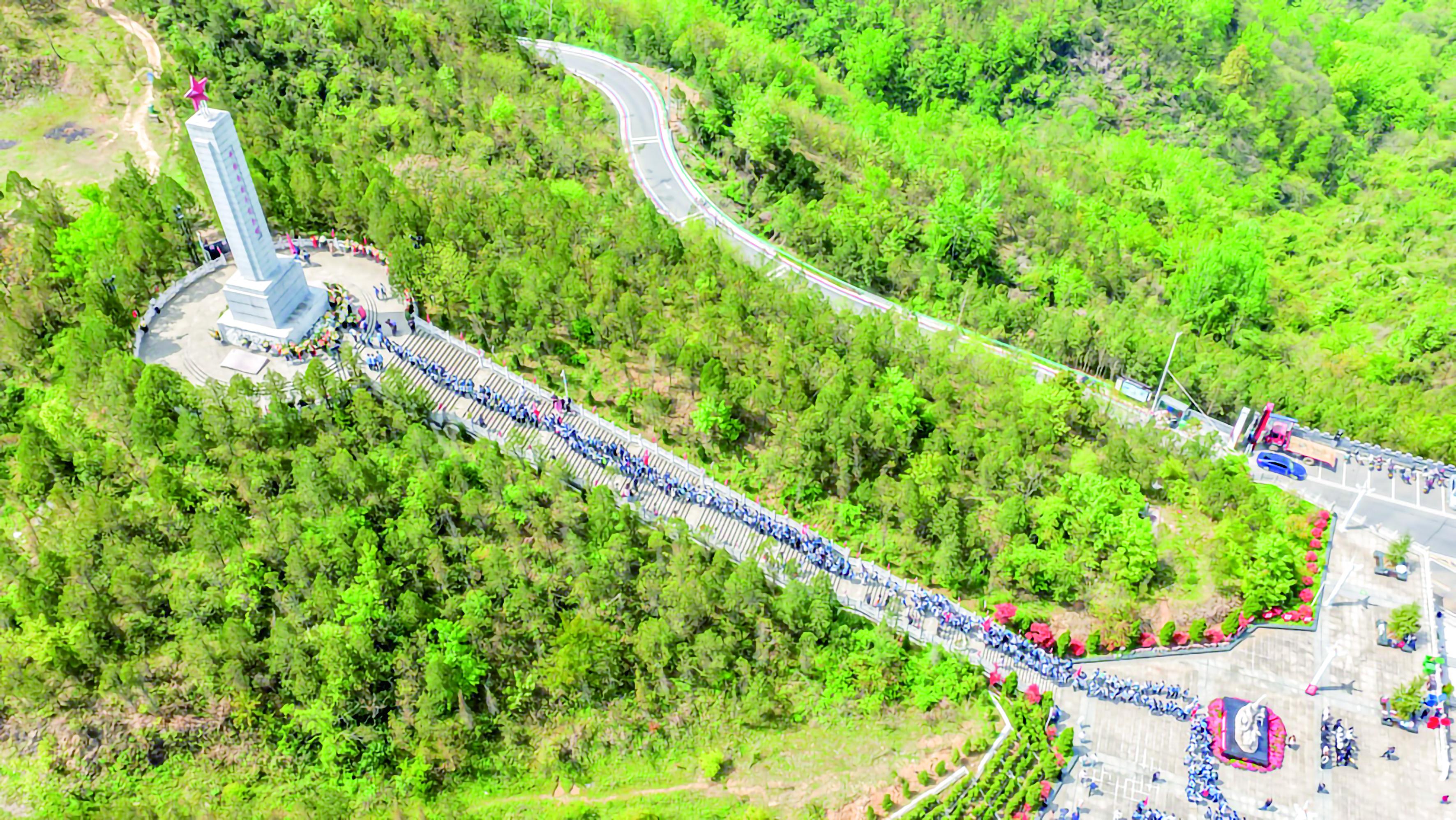 ▼ 4月3日,江北高級(jí)中學(xué)、安康中學(xué)初中部等5所學(xué)校的3000余名師生徒步赴牛蹄嶺開展清明祭奠烈士活動(dòng)。 皮勇維 攝