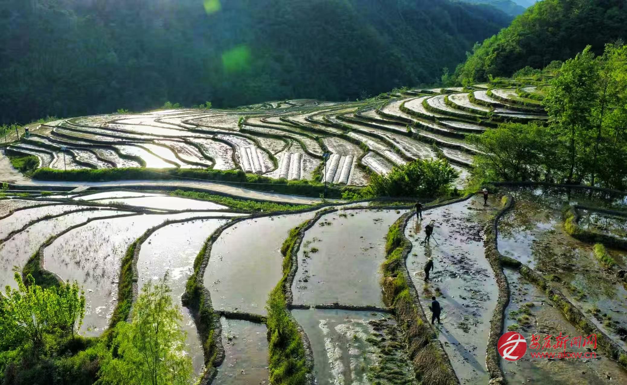 4月23日,嵐皋縣官元鎮(zhèn)古家村村民搶抓農(nóng)時,對2000余畝古水田進行深翻灌溉,為下一步插秧做好準備。 邱仕君 攝