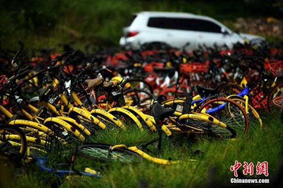 資料圖:堆積如山的共享單車。中新社記者 李進(jìn)紅 攝