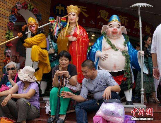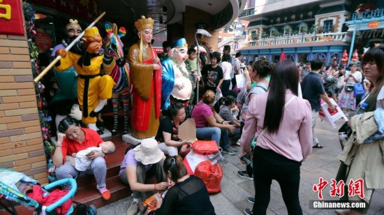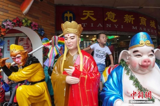 9月15日,一孩童坐在天意門前西游記師徒雕像上遠(yuǎn)眺。當(dāng)日,自1992年開業(yè)至今的北京天意市場(chǎng)迎來其在北京西城阜外大街營業(yè)的最后一日,商家趁機(jī)“瘋狂甩貨”,大批北京民眾也紛至沓來。這里曾是北京著名的小商品商城,聚集了數(shù)千家商戶。為疏解北京非首都功能,天意商城將于本月16日關(guān)門停業(yè)。中新社記者 崔楠 攝