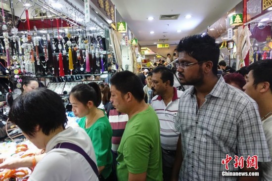 9月15日,幾位來自斯里蘭卡的游客慕名前來天意選購商品。當(dāng)日,自1992年開業(yè)至今的北京天意市場(chǎng)迎來其在北京西城阜外大街營業(yè)的最后一日,商家趁機(jī)“瘋狂甩貨”,大批北京民眾也紛至沓來。這里曾是北京著名的小商品商城,聚集了數(shù)千家商戶。為疏解北京非首都功能,天意商城將于本月16日關(guān)門停業(yè)。中新社記者 崔楠 攝
