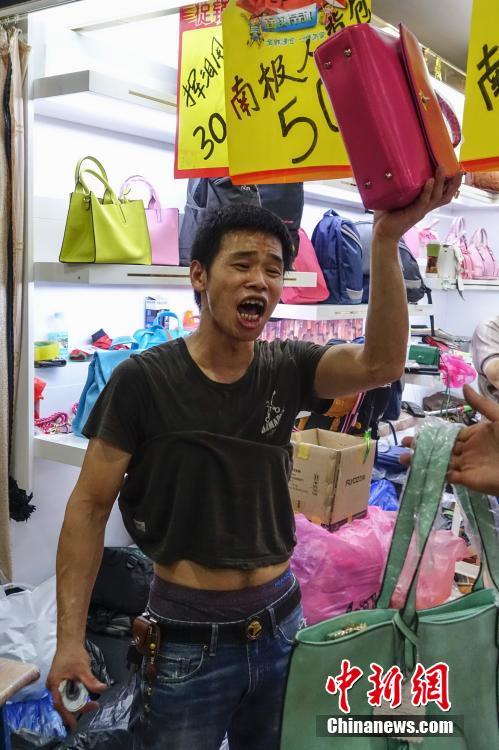 9月15日,一商家舉起商品大聲叫賣。當(dāng)日,自1992年開業(yè)至今的北京天意市場(chǎng)迎來其在北京西城阜外大街營業(yè)的最后一日,商家趁機(jī)“瘋狂甩貨”,大批北京民眾也紛至沓來。這里曾是北京著名的小商品商城,聚集了數(shù)千家商戶。為疏解北京非首都功能,天意商城將于本月16日關(guān)門停業(yè)。中新社記者 崔楠 攝