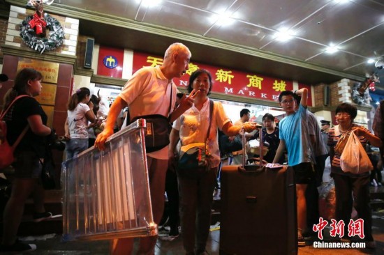 9月15日,商戶聚集在北京天意商城門口甩賣商品,吸引大批顧客搶購。天意商城是北京規(guī)模最大的小商品批發(fā)兼零售市場(chǎng),為疏解北京非首都功能,天意商城將于9月16日關(guān)門停業(yè)。中新社記者 盛佳鵬 攝