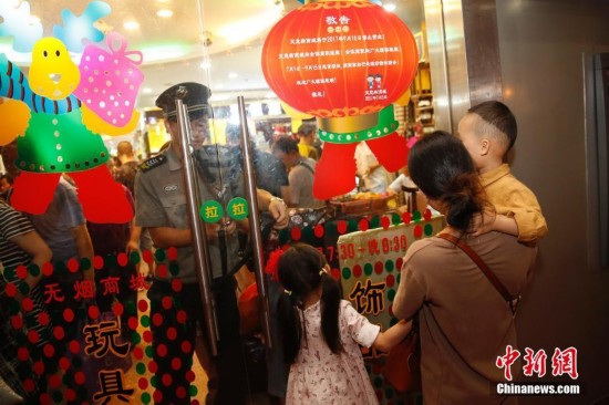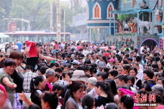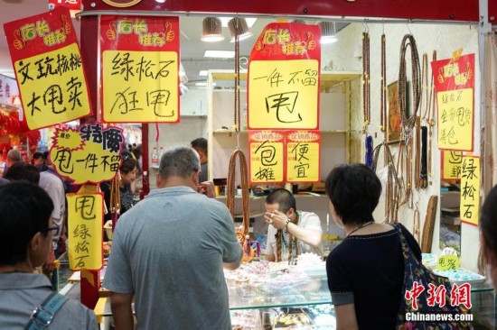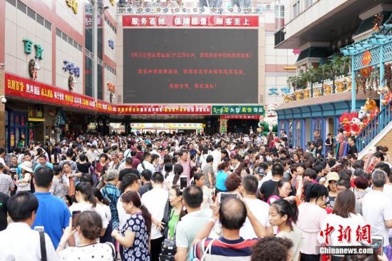 9月15日,市民齊聚天意批發(fā)市場(chǎng)中購物。天意商城是北京規(guī)模最大的小商品批發(fā)兼零售市場(chǎng),為疏解北京非首都功能,天意商城將于本月16日關(guān)門停業(yè)。中新社記者 韓海丹 攝