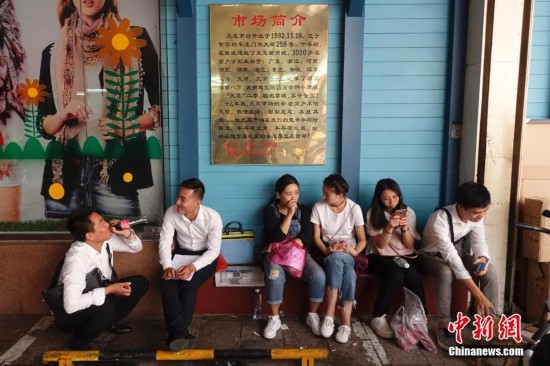 9月15日,市民購物后在天意批發(fā)市場(chǎng)中休息聊天。天意商城是北京規(guī)模最大的小商品批發(fā)兼零售市場(chǎng),為疏解北京非首都功能,天意商城將于本月16日關(guān)門停業(yè)。中新社記者 韓海丹 攝