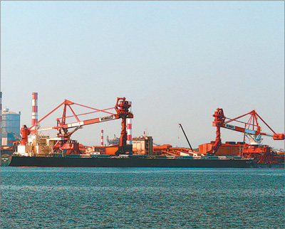 | 作為日本第三大鋼鐵企業(yè),神戶制鋼所的客戶包括豐田汽車、三菱重工、東海旅客鐵道公司等。圖為一艘散貨船?吭谏駪糁其撍墓S碼頭。 |