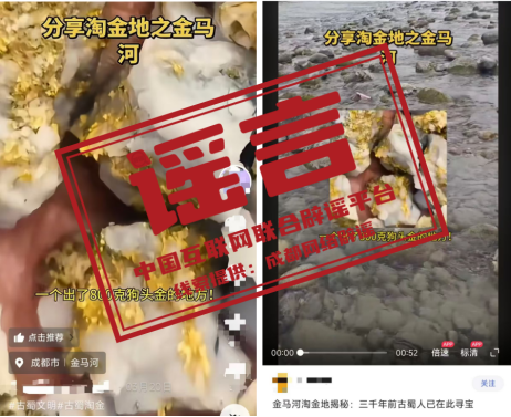 ?? 辟 謠 “金馬河現(xiàn)800克狗頭金”視頻系拼接剪輯