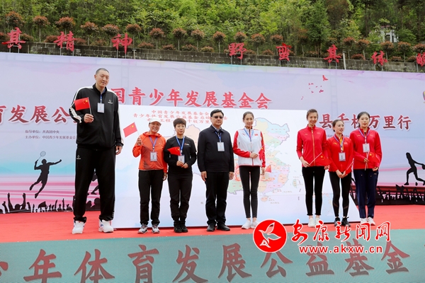 郭美薦在致辭中指出,“希望工程——百縣千校萬里行”活動(dòng),以紅軍二萬五千里長(zhǎng)征路線為主軸,發(fā)動(dòng)沿線及周邊的100個(gè)縣、1000所學(xué)校、50萬名學(xué)生,通過營(yíng)養(yǎng)提升、裝備改善、軍體訓(xùn)練、紅色鑄魂、健康推廣等五大計(jì)劃,將紅色教育、軍事國(guó)防教育與體育鍛煉相結(jié)合,引導(dǎo)青少年樹立愛國(guó)主義和革命英雄主義的精神情懷,激發(fā)愛國(guó)熱情,鍛造健康的體魄和健全的人格。希望同學(xué)們?cè)隗w育精神的感召之下,能夠成為擔(dān)負(fù)起中華民族偉大復(fù)興中國(guó)夢(mèng)大量的建設(shè)者和接班人。